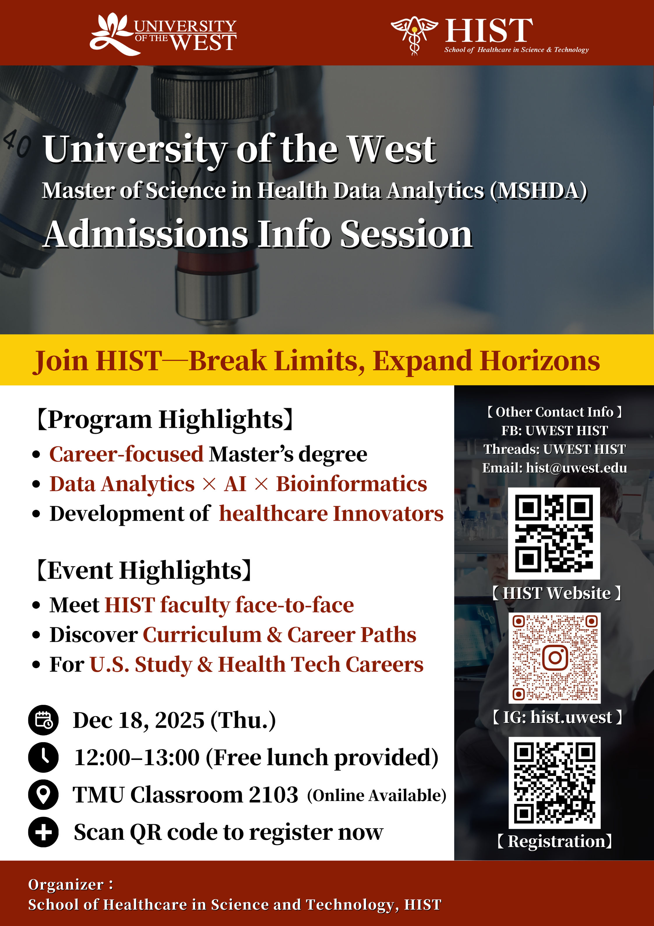 【UWEST HIST 醫療科技與 AI 跨域碩士說明會】來囉!